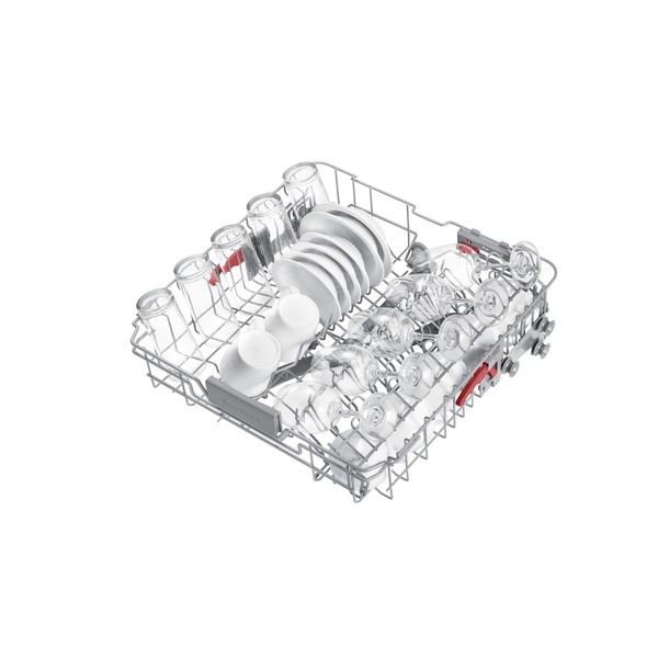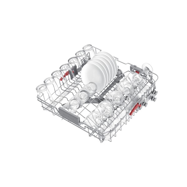 Terzo cestello flessibileSfrutta al meglio lo spazio di carico della lavastoviglie. Il terzo cestello flessibile, collocato nella parte superiore, è fatto apposta riporre posate e utensili piccoli e leggeri, liberando spazio nel cestello centrale. I potenti getti d’acqua puliranno a fondo le stoviglie, che in più saranno anche protette.