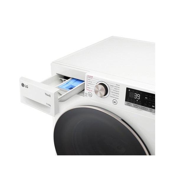 Wi-Fi con ThinQCollega la lavasciuga al Wi-Fi di casa e scarica l'app LG ThinQ sul tuo smartphone per controllarla da remoto o con la tua voce. Quando il ciclo che hai impostato è terminato, l'app ThinQ ti avviserà con una comoda notifica. Puoi scaricare anche nuovi programmi di lavaggio per trattare i tuoi capi nella maniera più indicata.