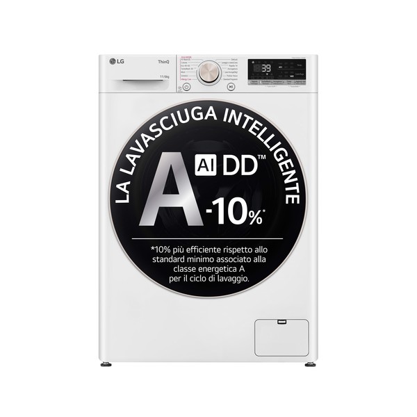 Tecnologia AI DD™L'Intelligenza Artificiale della lavasciuga non si limita a rilevare il peso dei vestiti nel cestello, ma identifica anche la tipologia dei tessuti in modo da scegliere autonomamente i movimenti ottimali per ogni lavaggio fra 20.000 combinazioni diverse. In questo modo i tuoi capi saranno trattati con una cura superiore del 18%*, facendoli durare più a lungo.
