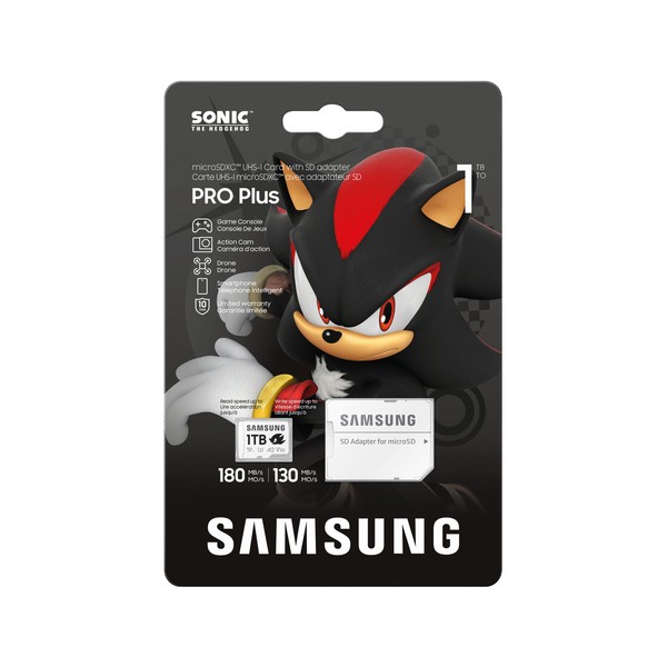 Sonic Design Porta sempre con te le avventure di Sonic con le microSD ufficiali del gioco decorate con immagini di Sonic, Shadow, Tails e Knuckles.