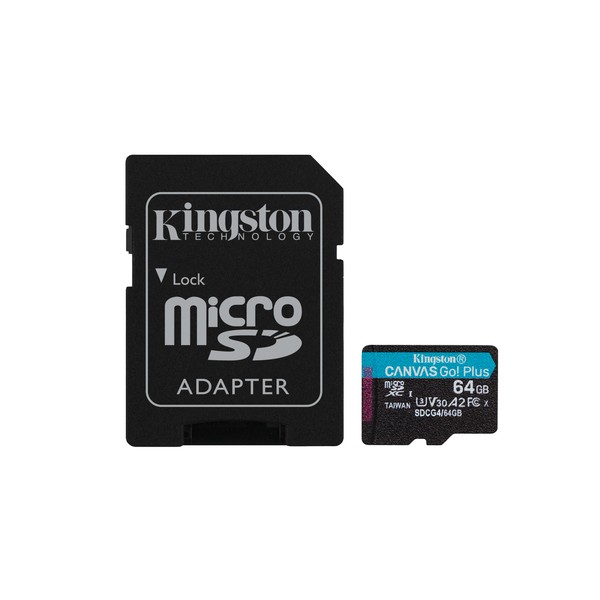 Kingston Technology Scheda microSDXC Canvas Go Plus Gen4 200MB/s A2 U3 V30 da 64 GB + adattatore