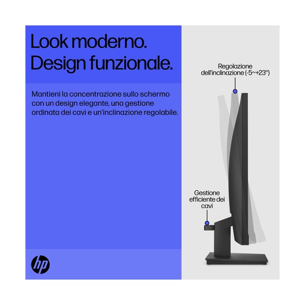 Profilo elegante, gestione ordinata dei cavi e base sottile con inclinazione regolabile per una visione perfetta: così avrai una scrivania sgombra e potrai concentrare l'attenzione sullo schermo.