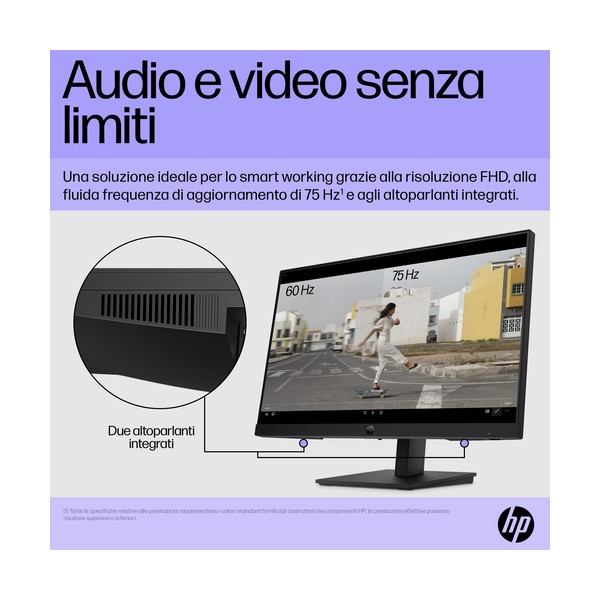 Un'esperienza di smart working perfetta, con immagini eccellenti grazie alla nitida risoluzione FHD e alla frequenza di aggiornamento di 75 Hz[1]. I due altoparlanti integrati, inoltre, offrono audio corposo e cristallino.