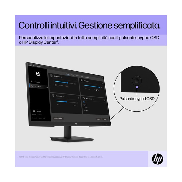Personalizza le impostazioni del monitor in modo semplice e intuitivo, con il pulsante Joypad OSD oppure gestendole direttamente dallo schermo con HP Display Center[2].