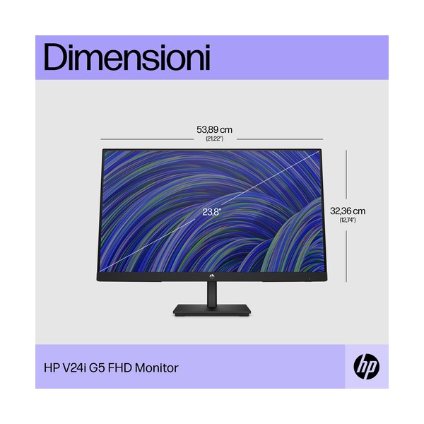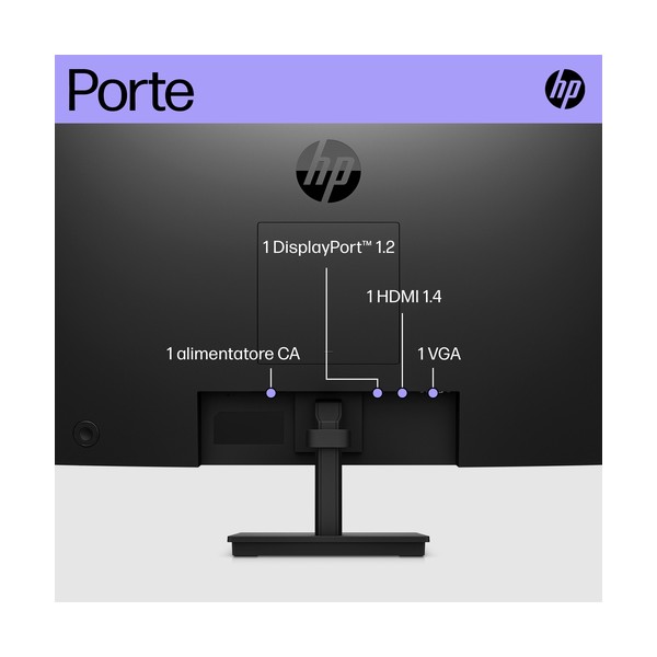 Produttività quotidiana Espandi la tua visione e migliora la produttività, con questo monitor FHD da 23,8'' (60,5 cm) di diagonale, perfetto per sia per il lavoro che per lo studio. Ampio ed elegante, questo monitor semplifica e completa l'ambiente di lavoro con uno schermo che offre immagini nitide e uniformi in un design essenziale, per fare di più giorno dopo giorno.
