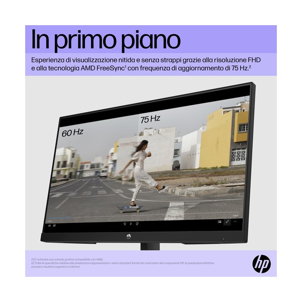 Progetti e assegnazioni acquistano un aspetto migliore, grazie a un monitor dotato di risoluzione FHD e tecnologia AMD FreeSync™ con frequenza di aggiornamento di 75 Hz[1], che offre immagini nitide e prive di artefatti, per un'eccellente visione frontale.