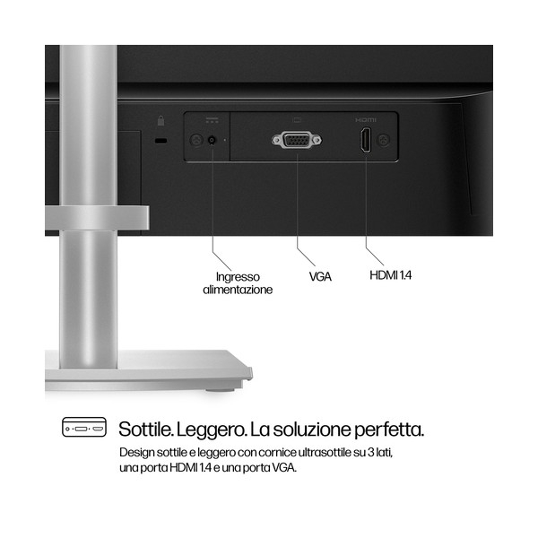 Design sottile e leggero, che si adatta in qualsiasi spazio con una cornice ultrasottile su 3 lati per una perfetta configurazione a doppio schermo e una visione ottimale. Inoltre le porte HDMI e VGA assicurano una produttività superiore.