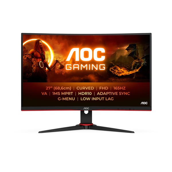 Monitor curvo VA da 27" con frequenza di aggiornamento di 165 Hz, 1 ms MPRT, bassa latenza di input e Adaptive Sync. L'AOC C27G2E curvo è dotato di un pannello VA da 27” e un raggio di curvatura di 1500R. Il frame rate di 165 Hz e Adaptive Sync, il tempo di risposta di 1 ms e un ridotto ritardo di input garantiscono immagini vivaci e senza scatti.