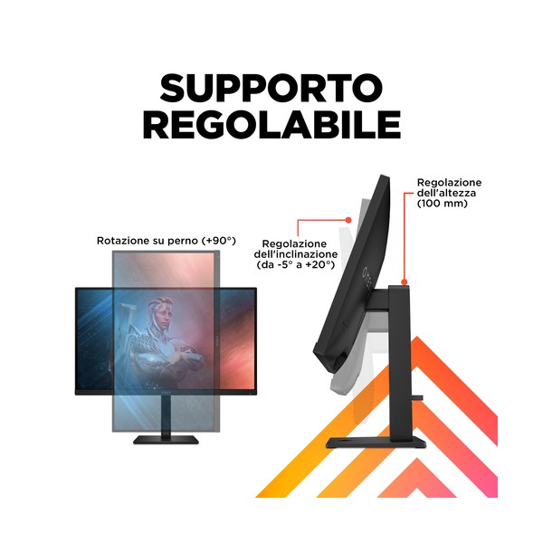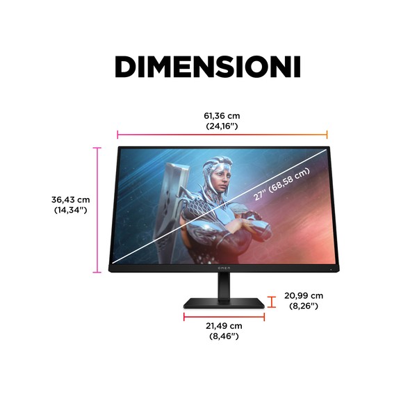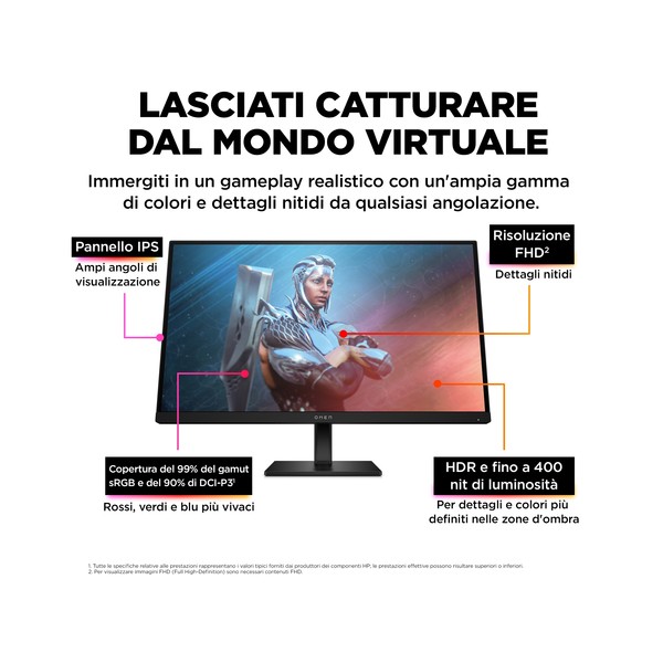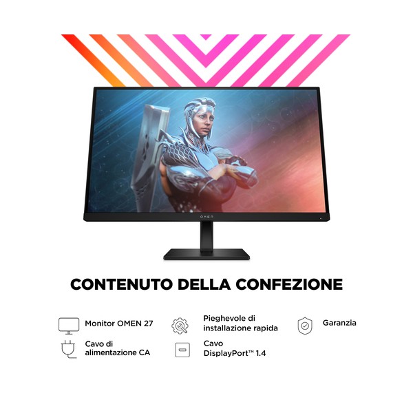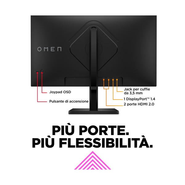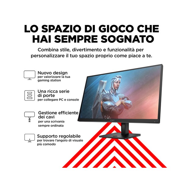 IL DIVERTIMENTO FA UN SALTO DI QUALITÀ Preparati a cogliere nuove possibilità con il monitor da gaming OMEN by HP da 27'', con display FHD a 165 Hz. Con le sue prestazioni rapide e i suoi colori intensi ti immergerà completamente nei tuoi giochi preferiti, mentre il suo design elegante aggiunge un tocco di classe alla scrivania.