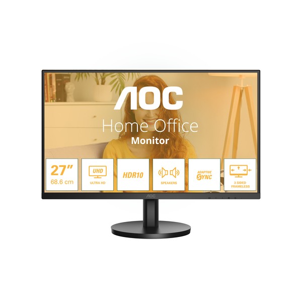 Monitor UHD da 27 pollici che offre un'ampia esperienza visiva per una produttività assoluta Aumenta al massimo la tua produttività con l'AOC U27B3A. Questo monitor UHD da 27 pollici vanta una frequenza di aggiornamento uniforme di 60 Hz e un elegante design senza cornice su tre lati, garantendo una comoda esperienza visiva. Dimentica l'affaticamento degli occhi grazie alla funzione a bassa luce blu che offre un'ampia protezione per i tuoi occhi. Inoltre, usufruisci di immagini senza sbavature grazie alla tecnologia Adaptive Sync e immergiti in una grafica straordinariamente nitida con supporto HDR10. L'altoparlante integrato da 2 watt ti offre un'esperienza audio migliorata.