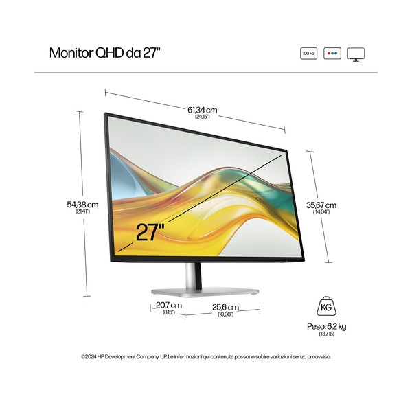 Scegliendo un monitor da 27 pollici con risoluzione QHD e frequenza di refresh di 100 Hz, potete fare molto di più[1]. Offre colori intensi, luminosi e uniformi, che coprono il 100% della gamma sRGB[1], e la tecnologia HP Progressive White Balance.[2]