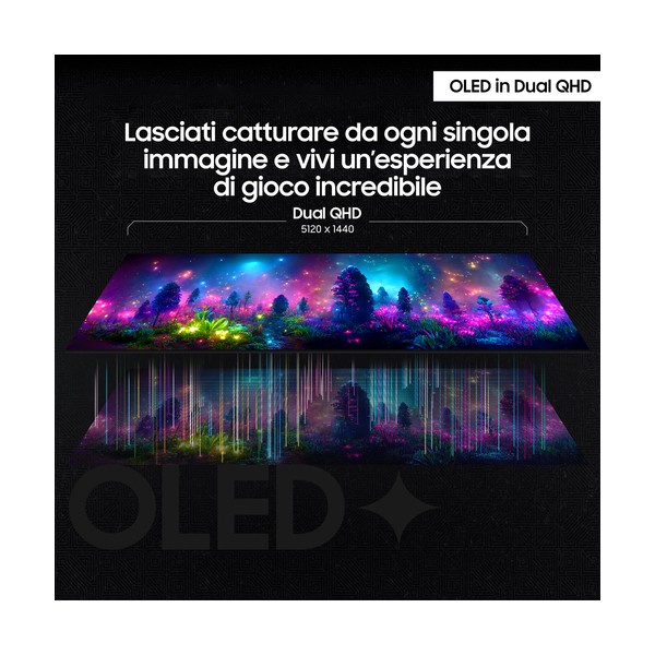 Grazie alla tecnologia OLED, avrai a disposizione uno spettro di colori più ampio, per lasciarti catturare da ogni singola immagine e vivere un'esperienza di gioco incredibile. Sullo schermo Dual QHD (5120 x 1440) potrai apprezzare ogni dettaglio con una chiarezza e una precisione mai viste prima.