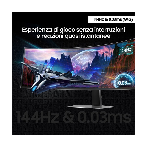 - Risoluzione DQHD, refresh rate 144Hz e tempo di risposta 0,03 ms (GtG)