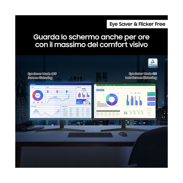 Massimo comfort per la vista Modalità Eye Saver e Flicker Free Proteggi i tuoi occhi senza rinunciare al comfort, anche durante le sessioni di gioco più lunghe. Grazie a una tecnologia allavanguardia certificata da TÜV per assicurare il massimo comfort visivo, questa modalità riduce al minimo l'affaticamento oculare, le emissioni di luce blu e lo sfarfallio dello schermo.
