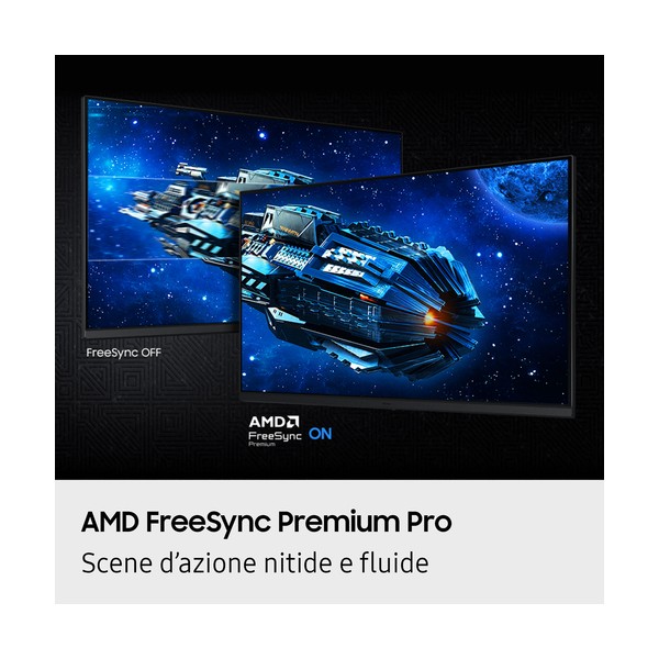 Azioni di gioco fluide senza interruzioni AMD FreeSync Premium Ottieni una riproduzione incredibilmente fluida durante le azioni più rapide dei tuoi giochi grazie alla frequenza di aggiornamento variabile (VRR) e alla tecnologia AMD FreeSync Premium. La sincronizzazione della GPU e del pannello riduce le intermittenze, il ritardo dello schermo e leffetto tearing, per affrontare nel modo migliore anche le sessioni di gioco più intense.