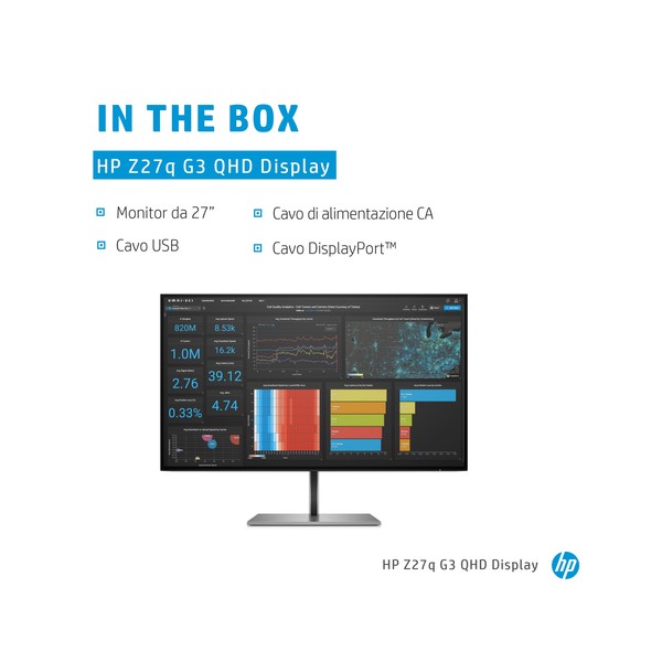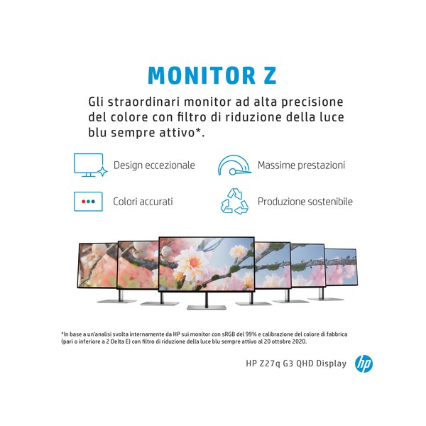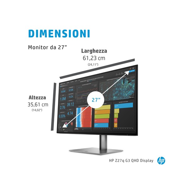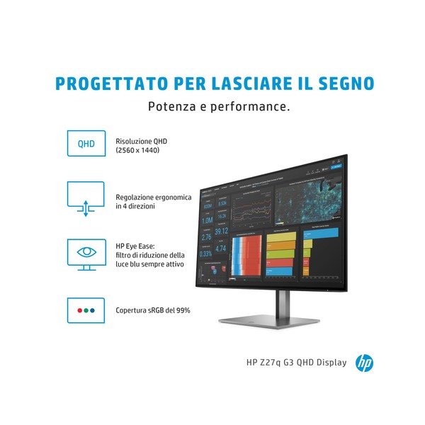 Design raffinato in ogni singolo dettaglio Realizzato secondo standard di design di alta qualità, HP Z27q G3 QHD Display è composto da alluminio autentico e offre un'esperienza di visione senza cornice davvero straordinaria. Date libero sfogo alla vostra creatività con colori estremamente precisi e risoluzione Quad HD. Questo monitor con diagonale da 27" vi offre l'opportunità di fruire della massima produttività e trasformare il vostro PC in una vera potenza.