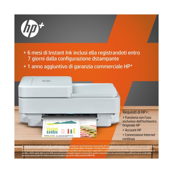 Stampante idonea a HP+. Scegli HP+ durante la procedura di configurazione della tua stampante per attivare tutti i vantaggi. HP+ richiede un account HP, una connessione a Internet continua e l'uso esclusivo delle cartucce di inchiostro Originali HP per tutta la durata di vita della stampante. Per maggiori informazioni consultare: http://www.hp.com/plus