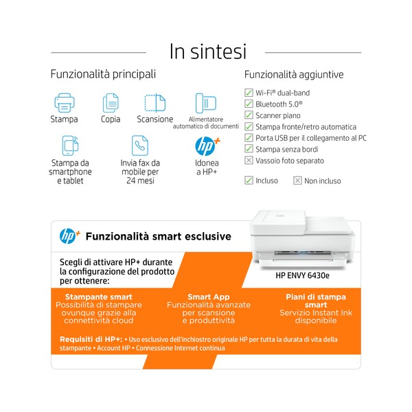 - wireless; HP+; idonea a HP Instant Ink; stampa da smartphone o tablet