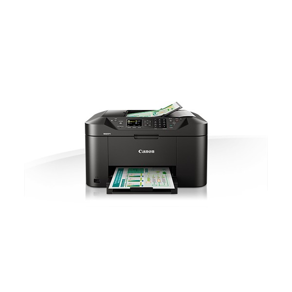 Versatile multifunzione con stampante, scanner, copiatrice e fax per uffici domestici che hanno bisogno di una qualità di stampa eccellente in bianco e nero e a colori a fronte di un costo per pagina ridotto. Dotato di un cassetto carta con capacità di 250 fogli e alimentatore automatico di documenti (ADF) da 50 fogli, Canon MAXIFY MB2150 produce stampe con colori vivaci e testo nitido grazie agli inchiostri DRHD che resistono allo sfregamento e all'utilizzo dell'evidenziatore. Canon MAXIFY MB2150 stampa in formato A4 a velocità elevate pari a 19 ipm in bianco e nero e 13 ipm a colori, mentre il tempo di stampa della prima pagina (FPOT, First Page Out Time) è di soli 6 secondi.