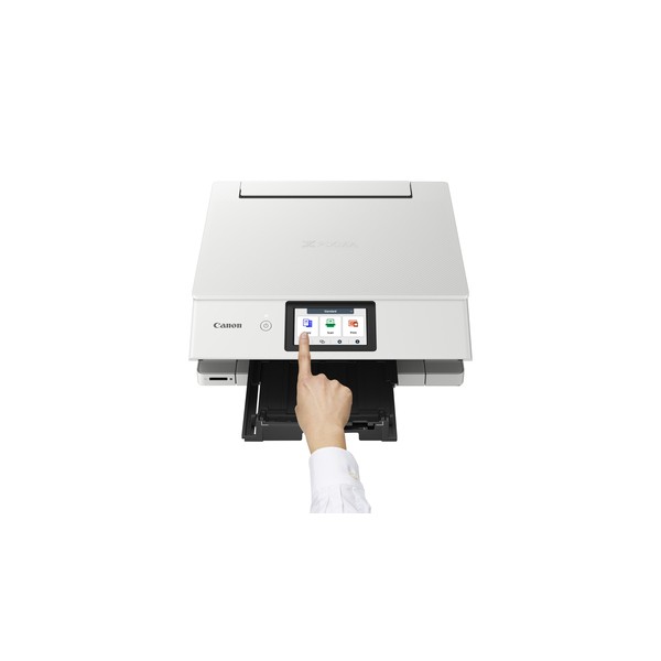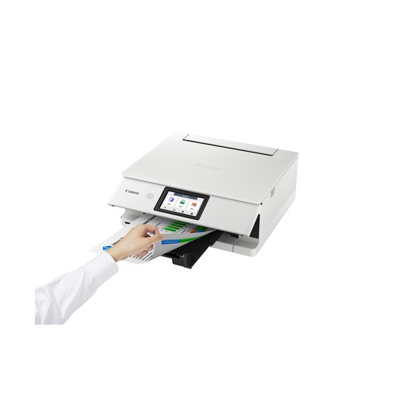 Canon PIXMA TS8751. Tecnologia di stampa: Ad inchiostro, Stampa: Stampa a colori, Risoluzione massima: 4800 x 1200 DPI. Copia: Copia a colori. Scansione: Scansione a colori, Risoluzione di scansione ottica: 2400 x 4800 DPI. Funzione duplex: Stampa. Massimo formato carta serie ISO A: A4. Wi-Fi. Colore del prodotto: Bianco