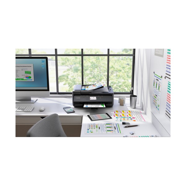 Stampante 4 in 1 compatta, versatile e ben connessa Ideale per la stampa negli uffici domestici, questa produttiva stampante multifunzione offre funzionalità di stampa, copia, scansione e fax con un sistema di inchiostri separati a 5 colori e semplici opzioni di connettività Wi-Fi, mobile e cloud.
