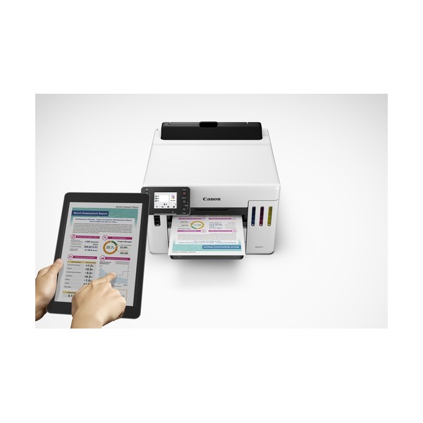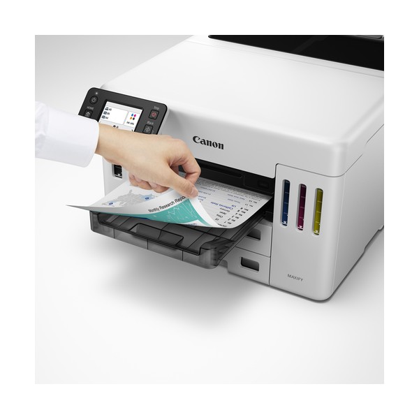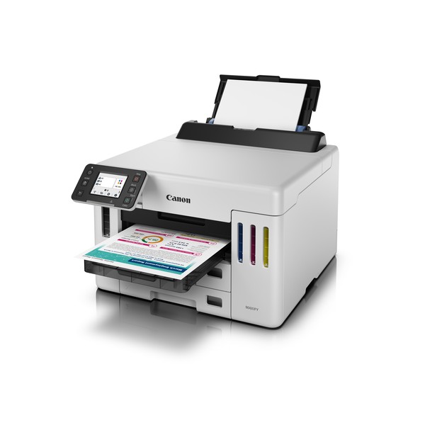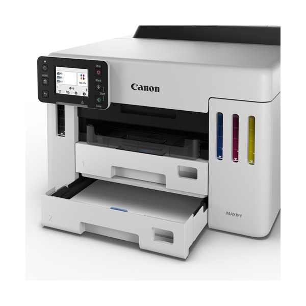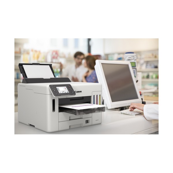 Canon MAXIFY GX5550. A colori, Numero di cartucce di stampa: 4, Ciclo massimo di funzionamento: 45000 pagine per mese. Risoluzione massima: 600 x 1200 DPI. Massimo formato carta serie ISO A: A4. Stampa fronte/retro. Tipologia display: LCD. Wi-Fi. Colore del prodotto: Nero, Bianco
