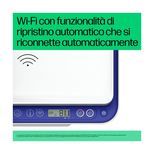 Stampante idonea a HP+. Scegli HP+ durante la procedura di configurazione della tua stampante per attivare tutti i vantaggi. HP+ richiede un account HP, una connessione a Internet continua e l'uso esclusivo delle cartucce di inchiostro Originali HP per tutta la durata di vita della stampante. Per maggiori informazioni consultare: http://www.hp.com/plus