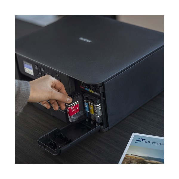 Brother DCP-J1310DW. Tecnologia di stampa: Ad inchiostro, Stampa: Stampa a colori, Risoluzione massima: 1200 x 6000 DPI, Velocità di stampa (colore, qualità normale, A4/US Letter): 9 ppm. Copia: Copia a colori, Risoluzione di copia massima: 1200 x 1800 DPI. Scansione: Scansione a colori, Risoluzione di scansione ottica: 1200 x 2400 DPI. Funzione duplex: Stampa. Massimo formato carta serie ISO A: A4. Wi-Fi. Colore del prodotto: Nero