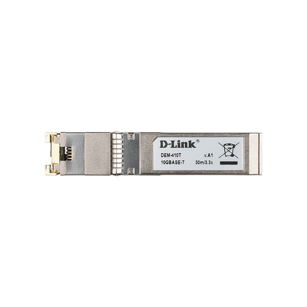 D-Link DEM-410T. Tipo di ricetrasmettitore SFP: Rame, Velocità massima di trasferimento dati: 10000 Mbit/s, Tipo interfaccia: SFP+. Colore del prodotto: Argento. Larghezza imballo: 74 mm, Profondità imballo: 131 mm, Altezza imballo: 49 mm. Lunghezza del cartone da spedizione: 36 cm, Ampiezza del cartone da spedizione: 26 cm, Altezza del cartone da spedizione: 31 cm
