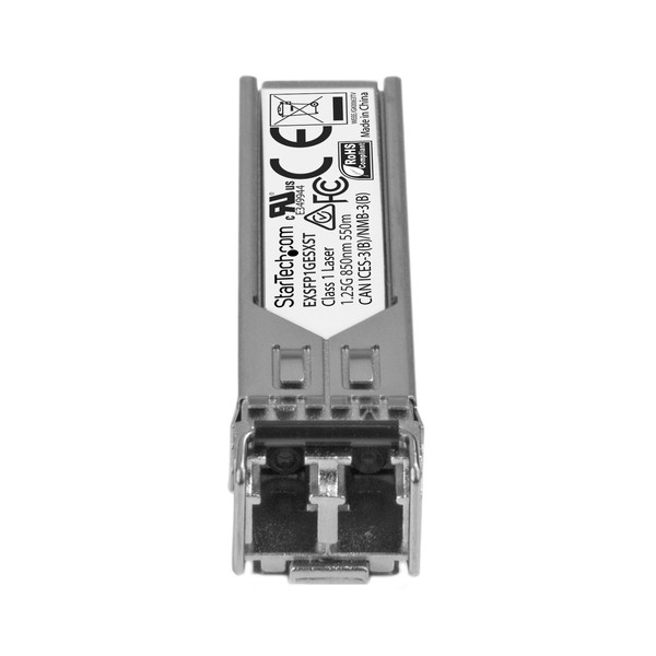 1000 Mbps (1 Gbps) | Fibra Multi-modale | LC | 550 m | Garanzia a vitaIl prodotto EXSFP1GESXST è un modulo ricetrasmettitore per fibra compatibile con Juniper EX-SFP-1GE-SX, progettato, programmato e testato per operare con switch e router a marchio Juniper®. Offre un'affidabile connettività da 1 GbE tramite cavo in fibra per le reti compatibili con 1000BASE-SX, a una distanza massima di 550 m.Specifiche tecniche:- Lunghezza d'onda: 850 nm- Velocità massima di trasferimento dei dati: 1,25 Gbps- Tipo: fibra multimodale- Tipo di connessione: connettore LC- Distanza massima di trasferimento: 550 m- MTBF: 3.381.761 ore- Consumo energetico: inferiore a 1 watt- Funzione DDM (Digital Diagnostics Monitoring): sìDotato di funzione hot-swap, questo modulo per fibra SFP consente di eseguire aggiornamenti e sostituzioni senza problemi, riducendo al minimo le interruzioni di rete.Ricetrasmettitori SFP di StarTech.comTutti i moduli ricetrasmettitori SFP e SFP+ di StarTech.com sono coperti da una garanzia e un supporto tecnico gratuito a vita. StarTech.com offre una vasta gamma di moduli SFP e di cavi SFP a collegamento diretto che assicurano prestazioni di rete affidabili con la massima fiducia e praticità.The StarTech.com Advantage