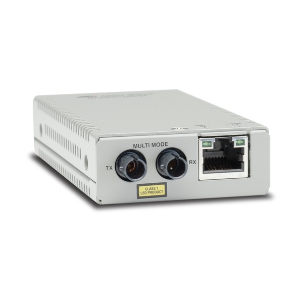 Allied Telesis AT-MMC200/ST-60. Velocità massima di trasferimento dati: 100 Mbit/s, Standard di rete: IEEE 802.1Q, Tipo di interfaccia Ethernet: Fast Ethernet. Connettore a fibra ottica: ST, Tecnologia di connessione: Cablato. Distanza massima di trasferimento: 2000 m, Lunghezza d'onda: 1310 nm, Struttura della modalità di fibra: Modalità multipla. Colore del prodotto: Argento. Consumi: 1,7 W