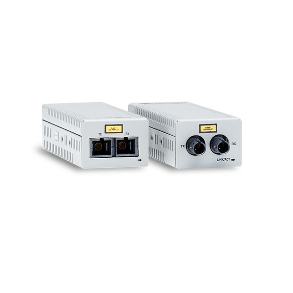 Allied Telesis AT-DMC100/LC-00. Velocità massima di trasferimento dati: 100 Mbit/s, interfaccia convertitore input: 100Base-TX, interfaccia convertitore output: 100Base-FX. Connettore a fibra ottica: LC, Tecnologia di connessione: Cablato. Distanza massima di trasferimento: 2000 m, Lunghezza d'onda: 1310 nm, Struttura della modalità di fibra: Modalità multipla. Colore del prodotto: Grigio, Sicurezza: UL60950-1, EN60950-1, Certificazione: FCC Class A, CISPR 22 Class A, EN55022 Class A, C-TICK, VCCI Class A. Voltaggio di ingresso: 5 V, Corrente d'ingresso: 0.5 A