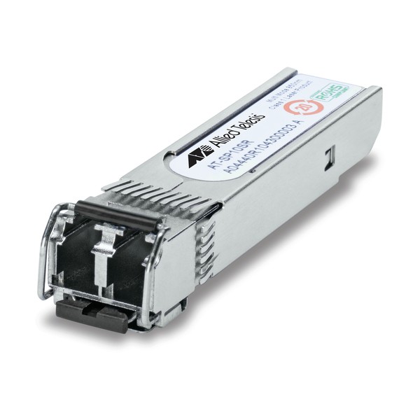 Allied Telesis AT-SP10SR/I. Tipo di ricetrasmettitore SFP: Fibra ottica, Velocità massima di trasferimento dati: 10300 Mbit/s, Tipo interfaccia: SFP+. Colore del prodotto: Metallico. Consumi: 1 W. Numero di prodotti inclusi: 1 pezzo(i). sensitività RX: -9,9 dB