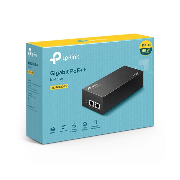 TP-Link TL-POE170S. Tipo di interfaccia Ethernet: Gigabit Ethernet, Velocità trasferimento Ethernet LAN: 10,100,1000 Mbit/s, Standard di rete: IEEE 802.3ab, IEEE 802.3af, IEEE 802.3at, IEEE 802.3bt, IEEE 802.3i, IEEE 802.3u. Colore del prodotto: Nero, Certificazione: FCC, CE, RoHS. Larghezza: 155 mm, Profondità: 70 mm, Altezza: 42 mm. Numero di prodotti inclusi: 1 pz