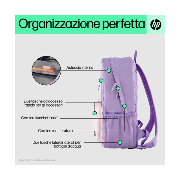 Tutti i vostri oggetti al sicuro Massima organizzazione, ma con stile. Uno zaino davvero sicuro in cui riporre tutti i vostri oggetti, con una cerniera bloccabile[1] e materiali antipioggia. Inserite il laptop nell'apposita tasca imbottita, riponete gli accessori e richiudeteli con la zip e portateli con voi in tutta sicurezza.