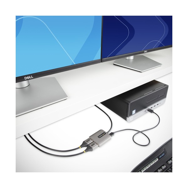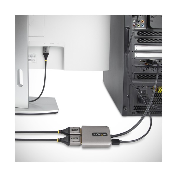 Consente di creare una workstation a doppio schermo ad alte prestazioni collegando un dispositivo DisplayPort™ a due monitor DisplayPort™ indipendenti.Questo hub MST da DisplayPort a DisplayPort consente di collegare due monitor DP utilizzando un unico dispositivo host con uscita DisplayPort.4K a 60Hz e HDRLa tecnologia MST (Multi-Stream Transport) combina più segnali video in un unico segnale/stream di uscita. Questo Hub DP MST separa il singolo flusso di ingresso in due segnali indipendenti, uno per ogni display con attacco DisplayPort. Il supporto per l'High Dynamic Range (HDR) consente di aumentare il contrasto, la luminosità, i colori e la brillantezza.Connessione HostRisoluzione Massima Uscita 1Risoluzione Massima Uscita 2Esempio di Processore/Grafica HostDisplayPort 1.4 con DSC5K 60Hz5K 60Hz*Intel 11ª generazione con DSCProcessori Intel di 12ª generazione e successiviGPU dedicate AMD e Nvidia che supportano il DSCDisplayPort 1.44K 60Hz4K 60HzIntel 10ª Gen (solo Ice Lake)Processori Intel di 11ª generazione e successiviGPU dedicate AMD e Nvidia che supportano DP 1.4DisplayPort 1.24K 30Hz4K 30HzIntel 8ª - Processori di decima generazione e successivi*Verificare le capacità della GPU e il supporto del driver per DSC tramite MST con l'OEM del dispositivo hostMultitasking SemplificatoConfigurate i display dual-DP in modalità estesa o speculare. Create una workstation ad alte prestazioni aggiungendo due display 4K 60Hz indipendenti. In questo modo è possibile aumentare il multitasking in tutta l'organizzazione; con conseguente aumento della produttività.Installazione Senza ProblemiQuesto adattatore MST è compatibile con i dispositivi Windows dotati di DisplayPort e processori di 11ª generazione (e successive) o con schede grafiche dedicate con uscita DisplayPort 1.4. Installazione plug-and-play, senza necessità di driver o software. Il cavo incorporato da 30 cm offre opzioni per configurazioni di installazione flessibili, riducendo le sollecitazioni su porte e connettori. Inoltre, questo splitter per doppio monitor è alimentato via USB e viene fornito con un cavo di alimentazione USB Micro-B.Questo prodotto è supportato per 3 anni, inclusa l'assistenza tecnica gratuita a vita 24/5 multilingue.The StarTech.com Advantage
