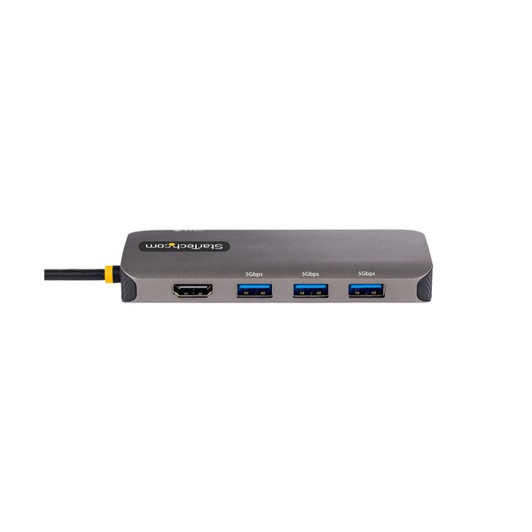 StarTech.com Adattatore USB C Multiporta, HDMI 4K 60Hz, Hub a 3 porte USB-A 5Gbps, 100W PD Pass-Through, GbE, Cavo integrato da 30cm, Docking station / Mini Dock da viaggio (127B-USBC-MULTIPORT)