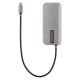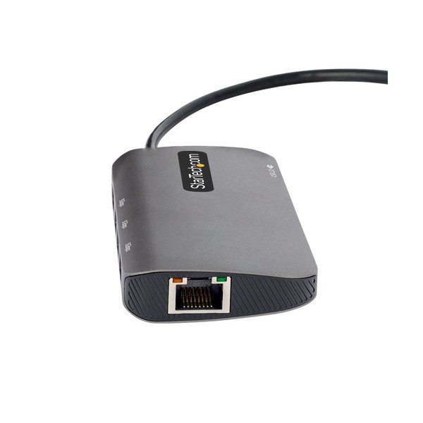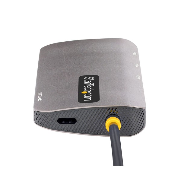 Docking Station portatile | Mac e Windows® | 4K 60Hz | GbE | Compatibile con Thunderbolt™ 3 e Thunderbolt™ 4Questo adattatore multiporta USB-C™ con modalità DP 1.4 Alt supporta 4K 60Hz HDMI® (HDR) e trasforma MacBook, Dell XPS o altri laptop o tablet USB-C in una workstation, ovunque ci si trovi. L'adattatore multiporta USB Type-C™ è dotato di un'uscita video 4K HDMI, tre porte USB 3.2 Gen 1 Type-A (5 Gbps) e una porta Gigabit Ethernet, il tutto tramite un'unica connessione alla porta USB-C, USB4 o Thunderbolt 3 o 4™ del laptop. Inoltre, offre ricarica avanzata e flessibilità attraverso una porta USB-C Power Delivery 3.0 e dati condivisa; quando non è collegata una fonte di alimentazione questa porta può essere utilizzata per collegare periferiche a velocità di trasferimento dati USB 2.0 (480Mbps). L'adattatore multiporta è dotato di un cavo host lungo 30 cm, per una portata estesa e per offrire una maggiore flessibilità di configurazione.Produttività MigliorataLa docking station portatile consente di collegare un monitor HDMI 4K 60Hz (4096 x 2160p) o un monitor ultrawide al laptop, per creare una potente workstation.DP Alt- ModeRisoluzione MassimaDP 1.2 Alt ModeFino a 4K 30HzDP 1.4 Alt ModeFino a 4K 60HzConsente di Collegare Dispositivi USBL'hub da USB-C a USB 3.2 Gen 1 dispone di tre porte USB-A (5 Gbps) per il collegamento dei dispositivi USB.Multeplici Modalità d'UsoUna versatile soluzione dock per l'uso sulla scrivania dell'ufficio; nell'home office, in hotel o nella sala riunioni, è abbastanza portatile da poter essere trasportata nella borsa o nello zaino per l'uso in mobilità. Questo leggero adattatore USB-C può essere alimentato tramite bus. In alternativa, è possibile collegare l'adattatore di alimentazione USB-C del laptop per caricare il laptop e le periferiche USB.Ricarica del LaptopCon il supporto per USB Power Delivery 3.0 pass-through (fino a 100 W), l'adattatore multiporta USB Type-C consente di alimentare e caricare il laptop, se collegato a una fonte di alimentazione USB-C. PD 3.0 è dotato di Fast Role Swap (FRS) per prevenire l'interruzione dei dati USB quando si cambia fonte di alimentazione (da adattatore di alimentazione USB-C ad alimentazione via bus).Connettività di Rete AffidabileLa porta Gigabit Ethernet garantisce un accesso affidabile alla rete cablata, con supporto per PXE Boot e WoL.Consente di Migliorare la Produttività e la Gestione dei Dispositivi con l'Applicazione StarTech.com "Connectivity Tools"Sviluppato per migliorare le prestazioni e la sicurezza, StarTech.com Connectivity Tools è l'unica suite software sul mercato in grado di funzionare con un'ampia gamma di accessori di connettività IT. La suite software comprende:-Utility avanzata di layout finestre: per impostare e salvare layout di finestre personalizzati.-Utility pass-through indirizzo MAC: per migliorare la sicurezza della rete.-Utility di monitoraggio degli eventi USB: per tracciare e registrare i dispositivi USB collegati.-Utility di commutazione automatica Wi-Fi: Consente agli utenti di accedere rapidamente a velocità di rete più elevate tramite LAN cablata.Per ulteriori informazioni e per scaricare l'applicazione StarTech.com Connectivity Tools, visitare il sito: www.startech.com/connectivity-toolsIl 127B-USBC-MULTIPORT è supportato da StarTech.com di 3 anni incluso il supporto tecnico gratuito a vita.The StarTech.com Advantage