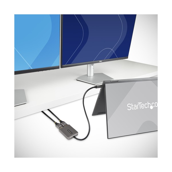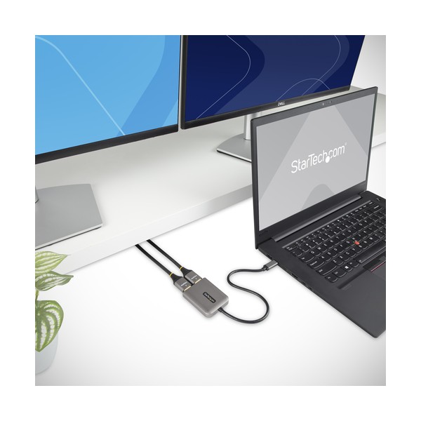 2 x 4K 60Hz | Video Splitter Multi-Monitor | Windows® | DSC | HDRQuesto HUB MST da USB-C a HDMI permette di collegare due Monitor HDMI, utilizzando un dispositivo host abilitato USB-C.Multi-Tasking FacilitatoQuesto Splitter video da USB-C a HDMI consente di collegare fino a due Display aggiuntivi in modalità estesa o duplica. Collegando due Monitor 4K 60Hz indipendenti si possono creare postazioni di lavoro ad alte prestazioni, per gli utenti della vostra azienda, consentendo un comodo multi-tasking con conseguente aumento della produttività.Connessione hostRisoluzione uscita 1Risoluzione uscita 2DisplayPort 1.4 con DSC4K 60Hz4K 60HzDisplayPort 1.44K 60Hz4K 30HzDisplayPort 1.24K 30Hz4K 30Hz4K 60Hz e HDRLa tecnologia Multi-Stream Transport (MST) combina più segnali video in un unico segnale/stream. Questo HUB MST separa il singolo flusso in due segnali indipendenti, uno per ogni Monitor HDMI abilitato. Il supporto per High Dynamic Range (HDR) fornisce maggiore contrasto, luminosità, colori e maggiore luminosità.Configurazione senza problemiI dispositivi Windows compatibili con la modalità DP Alt-Mode su USB-C dispongono del supporto nativo per HUB MST. Questo HUB da USB-C a HDMI è compatibile con i dispositivi Windows abilitati Thunderbolt 4, Thunderbolt 3 e USB4. Installazione plug-and-play senza driver o software richiesti. Il cavo integrato da 30 cm consente installazione flessibili, riducendo lo sforzo su porte e connettori. Il dispositivo viene alimentato via bus pertanto non necessita di alimentatori esterni.MST14CD122HD è coperto da una garanzia StarTech.com di 3 anni e da un supporto tecnico multilingue gratuito a vita.The StarTech.com Advantage