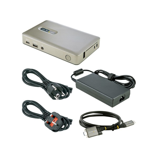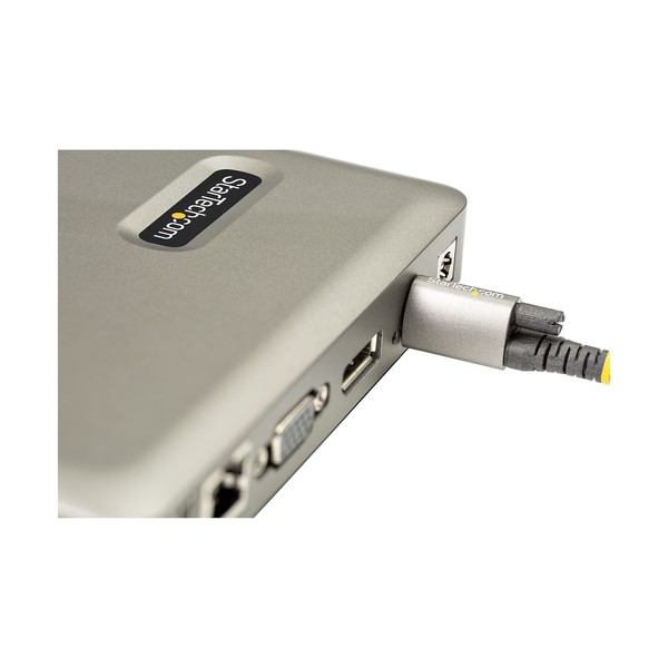Docking Station Laptop | Mac, Windows®; Chrome OS™; | Power Delivery 65W| DisplayPort (4K 30Hz) or VGA (1080p 60Hz)Questa Docking Station USB-C consente, impegnando una singola porta USB Type-C del Laptop o Tablet, di aggiungere la connettività essenziale mentre carichi il dispositivo tramite la porta USB Power Delivery 3.0 65W. La Dock permette di collegare il dispositivo a un singolo monitor a scelta tra DisplayPort (4K 30Hz) o VGA (1080p 60Hz). Per la connettività delle periferiche la Dock dispone di tre porte USB 3.1 Gen 1 (5Gbps) Type-A, compresa una porta BC 1.2 per alimentare e ricaricare i tuoi dispositivi USB, una porta USB 3.1 Gen (5Gbps) Type-C, una porta audio per cuffie con Jack da 3,5 mm e una porta Ethernet Gigabit.Connettività Versatile del MonitorLa Docking Station è dotata di una singola uscita video con connettività DisplayPort o VGA in modo da connettersi a diversi monitor a seconda della workstation - ideale per l'implementazione dell'IT a casa, dove monitor diversi possono essere utilizzati da utenti diversi. La connessione DisplayPort offre risoluzioni fino a 4096x2160 (4K) 30Hz, mentre la connessione VGA offre risoluzioni fino a 1920x1200/1080p 60Hz.Connettività delle Porte EssenzialiLa Docking Station utilizza la versatile porta USB-C del computer per fornire una ampia gamma di porte aggiuntive per soddisfare una varietà di applicazioni.La Dock Dispone:- 3 Porte USB 3.1 Gen 1 (5Gbps) Type-A per collegare periferiche USB, compresa una singola Porta BC 1.2 con 7.5W (1.5A) per caricare tablet e smartphone, una porta USB HID fisicamente isolata (su un lato) che previene le interferenze elettromagnetiche (EMI) su adattatori tastiera/mouse wireless- 1 Porta USB 3.1 Gen 1 (5Gbps) Type-C per collegare periferiche USB- 1 Porta Ethernet Gigabit con avvio PXE e WoL per connettersi a una rete locale cablata (LAN)- 1 connettore da Audio Jack da 3.5mm 4-position CTIA/OMTP TRRS Audio per collegare una cuffia.USB Power Delivery 65WLa Docking Station include un alimentatore da 120W e supporta 65W su USB Power Delivery. Questo permette alla Dock di caricare un laptop o tablet collegato. Inoltre, la potenza aggiunta consente a una delle porte USB-A BC 1.2, di caricare tablet e smartphone.Migliora la produttività e la gestione dei dispositivi con l'applicazione StarTech.com Connectivity ToolsSviluppato per migliorare le prestazioni e la sicurezza, StarTech.com Connectivity Tools è l'unica suite software sul mercato che funziona con una vasta gamma di accessori di connettività IT. La suite software include:-Advanced Windows Layout Utility: Per impostare e salvare layout personalizzati delle finestre-Mac Address Pass-Through Utility: Per migliorare la sicurezza della rete-USB Event Monitoring Utility: Per tracciare e registrare i dispositivi USB collegati-Wi-Fi Auto Switch Utility: Consente agli utenti di accedere rapidamente a velocità di rete più elevate tramite LAN cablata.Per ulteriori informazioni e per scaricare l'applicazione StarTech.com Connectivity Tools, visitate: www.StarTech.com/Connectivity-ToolsIl DKM30CHDPDUE è coperto dalla garanzia StarTech.com di 3 anni e dal supporto tecnico multilingue gratuito a vitaThe StarTech.com Advantage