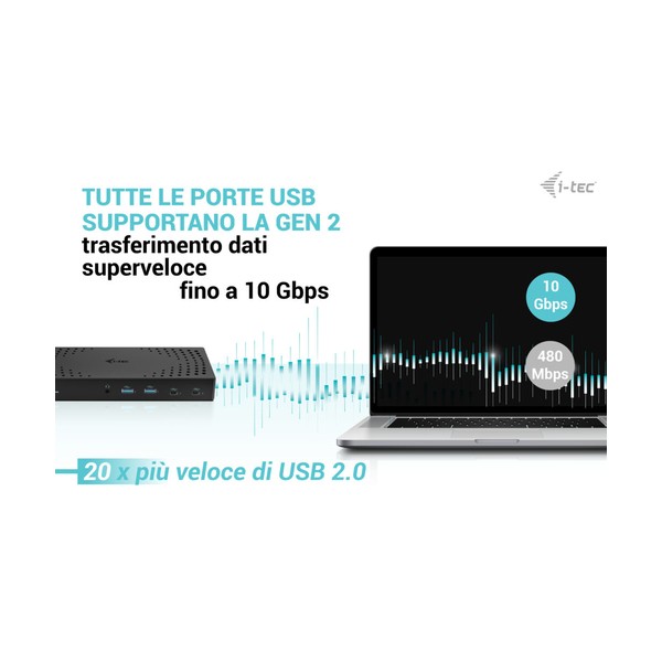 Clonazione opzionale dell'indirizzo MAC e backup automatico dei dati del computer collegato (quando si utilizza il software i-tec Docker Pro).i-tec Docker Pro software)