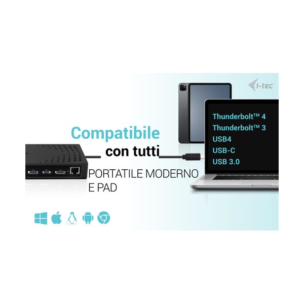 Il dock è compatibile con tutti i notebook moderni (si collega tramite porte USB 3.0, USB-C o Thunderbolt™ 3/4)