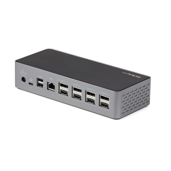 Docking Station USB-C e USB-A | USB 3.1 10Gbps Gen 2 | HDMI 4K 60HZ |DispalyPort 4K 60Hz | Power Delivery 100WQuesta Docking Station USB-C Gen2 10Gbps trasforma il tuo Dispositivo USB-C®, MacBook Pro Thunderbolt™ 3, Laptop Windows e Chromebook in una potente Workstation. La Dock USB 3.2 Gen 2 Type-C dispone di tutto il necessario, uscite video Quad HDMI o DisplayPort fino a 4K 60 Hz, Porte USB-C a 10Gbps; porte per periferiche USB-A Power Delivery 100W.Quattro Monitor HDMI o DisplayPortQuesta Docking Station USB-C Gen2 con supporto DP 1.2 e HDMI 2.0 HDR, è la scelta ideale per la configurazione di due, tre o quattro monitor, supportando fino a quattro uscite video 4K 60Hz, con qualsiasi combinazione tra DisplayPort e HDMI, su Notebook USB-C Gen2, MacBook (compresi i sistemi basati su M1) e Laptop Thunderbolt 3 basati su Windows.Specifiche del Display e della Risoluzione:Quattro DisplayPort 4K | Fino a 3840 x 2160p @ 60HzQuattro HDMI 4K | Fino a 3840 x 2160p @ 60HzQuattro 4K (Mix HDMI e DP) | Fino a 3840 x 2160p @ 60HzDoppio DisplayPort*5K | Fino a 5120 x 2880Singolo DisplayPort* 5K | Fino a 5120 x 2880 + Doppio HDMI/DisplayPort 4K | Fino a 3840 x 2160p @ 60Hz*Richiede Monitor compatibile 5K e utilizza due porte DP per una connessione al Monitor 5KAlimentazione e Ricarica con Power Delivery 100WAlimenta e carica i Laptop e gli Ultrabook della workstation USB-C/Thunderbolt 3 con PD 100 Watt, eroga una potenza maggiore rispetto ad altre Docking Station per quattro Monitor USB-C 10 Gbps.Carica Smartphone e altri dispositivi ad alta potenza con due porte di ricarica frontale BC 1.2 per dispositivi USB-A e USB-C. Le porte di ricarica rapida sono sempre attive in modo che i dispositivi si possano caricare indipendentemente dal fatto che un Laptop sia collegato o meno.Elevato Numero di Porte USBQuesta Docking Station USB-C Gen 2 dispone di 4 porte USB per collegare periferiche e dispositivi.- 1x USB-C 3.2 Gen 2 (10 Gbps | 15W/3A)- 1x USB-A 3.2 Gen 1 (5 Gbps | 7.5W/1.5A)- 2x USB-A 3.2 Gen 1 (5 Gbps | 4.5W/0.9A)Inclusa anche una porta Ethernet Gigabit con supporto PXE Boot e WoL, così come una porta TRRS Stereo a 4 posizioni per cuffie/microfono.Caratteristiche di Sicurezza AggiuntiveQuesta Docking Station USB-C è dotata di numerosi sistemi di sicurezza, un K-Slot per un lucchetto tipo Kensington e fori per fissare la Dock sulla scrivania o sulla parete, include un cavo USB-C certificato USB-IF da 1 m.Ventilazione OttimizzataLa Dock USB-C presenta delle prese d'aria su entrambe le estremità e sul lato inferiore per garantire un adeguata ventilazione anche alle temperature più elevate che possono essere generate da applicazioni video/grafiche ad alte prestazioni e da più uscite video 4K 60Hz.Migliora la produttività e la gestione dei dispositivi con l'applicazione StarTech.com Connectivity ToolsSviluppato per migliorare le prestazioni e la sicurezza, StarTech.com Connectivity Tools è l'unica Suite Software sul mercato che funziona con una vasta gamma di accessori di connettività IT. La Suite Software include:-Avanced Windows Layout Utility: Per impostare e salvare layout personalizzati delle finestre.-Utilità di passaggio dell'indirizzo Mac: per migliorare la sicurezza della rete.-USB Event Monitoring Utility: Per tracciare e registrare i dispositivi USB collegati-Wi-Fi Auto Switch Utility: Consente agli utenti di accedere rapidamente a velocità di rete più elevate tramite LAN Cablata.Per ulteriori informazioni e per scaricare l'applicazione StarTech.com Connectivity Tools, visitare: www.StarTech.com/Connectivity-ToolsThe StarTech.com Advantage