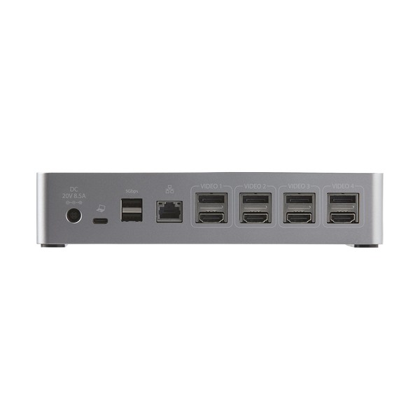 INSTALLAZIONE E GESTIONE SEMPLICE: Docking station per display quadrupli con cavo host USB-C da 1 m (certificato USB-IF), pulsante di accensione/spegnimento anteriore, k-slot e fori di montaggio - Ventilazione ottimizzata per un raffreddamento maggiore