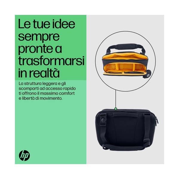 Per creare sempre e ovunque Professionisti o principianti, quando arriva l'ispirazione bisogna essere sempre pronti a partire. Quando l'ispirazione arriva, non dovete fare altro che sfilare il vostro laptop da 13,3'' o qualsiasi altro strumento creativo dallo scomparto ad accesso rapido. Grazie a questa borsa, dotata di cover impermeabile[1] e un design leggero, siete sempre pronti a fare cose straordinarie, ovunque vi troviate.