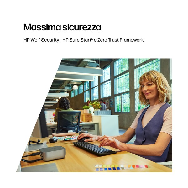 Prevenite le potenziali minacce con HP Wolf Security[4], che integra HP Sure Start[5] e Zero Trust Framework per fornire una sicurezza end-to-end completa. Lavorate serenamente sapendo che tutto, dalla dock al cloud, è protetto.