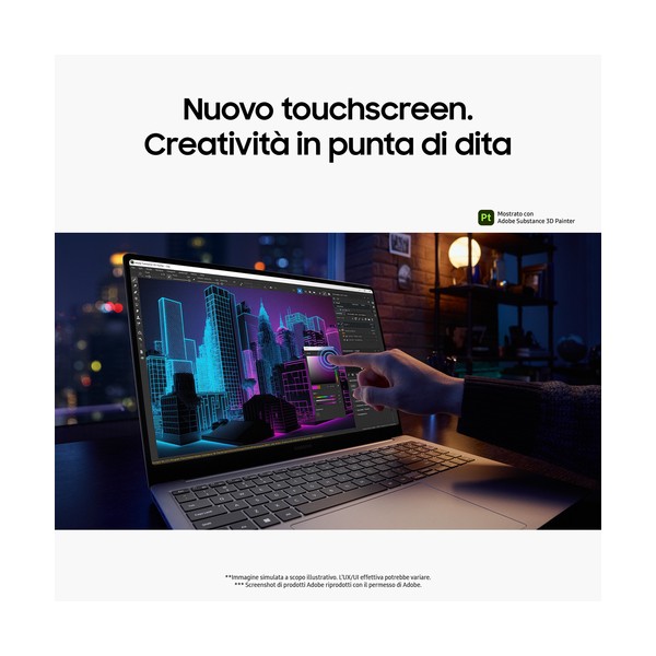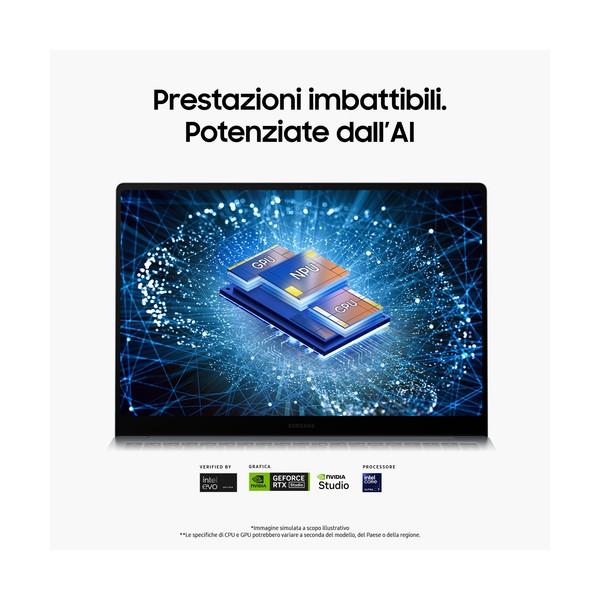 Passa da un progetto creativo allaltro grazie alla lunga durata della batteria da 76 Wh (tipica) per unautonomia video fino a 21 ore. Ricarica il tuo laptop del 55% in soli 30 minuti grazie a un caricabatterie leggero, portatile e compatibile con gli altri dispositivi Samsung Galaxy.