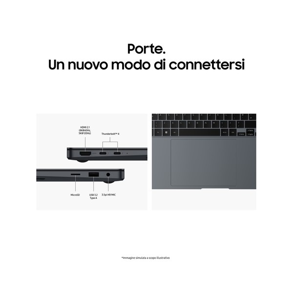 Produttività estrema a portata di mano con lampio touch pad e le versatili porte integrate: HDMI aggiornata, USB-A, slot microSD e persino due porte Thunderbolt 4 per fulminei trasferimenti di file a 40 Gbps. Basta collegarsi e iniziare a creare, senza adattatori.