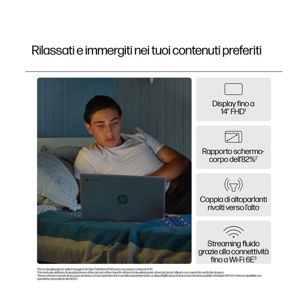 Prestazioni a prova di intrattenimentoAumenta produttività ed efficienza con HP Chromebook 14", che offre le prestazioni di un processore fino a Intel