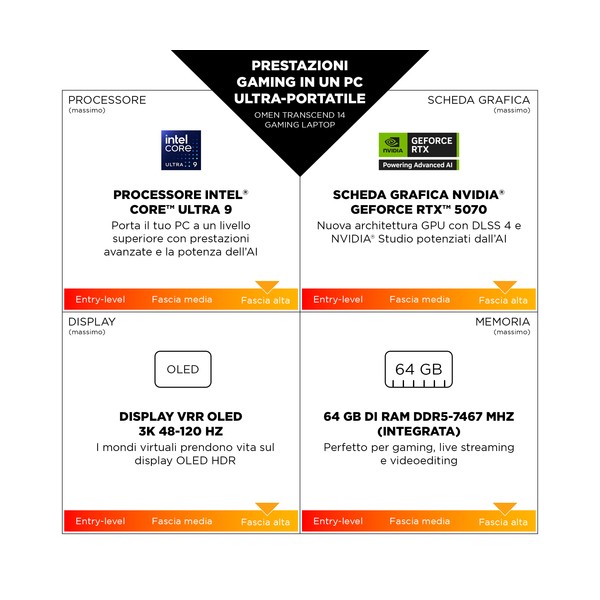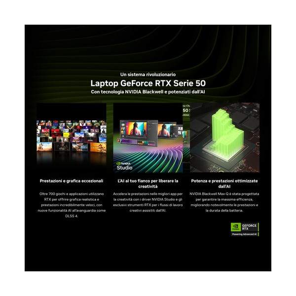 Prestazioni Gaming in un PC ultra-portatile Design premium e prestazioni straordinarie con un dispositivo ultrasottile, leggerissimo e interamente in metallo. Elevata autonomia, ricarica rapida USB Type-C, processore fino a Intel Core™ Ultra, scheda grafica NVIDIA GeForce RTX™ serie 50 e display OLED 3K a 120 Hz. Ideale per tutte le necessità, gaming incluso.